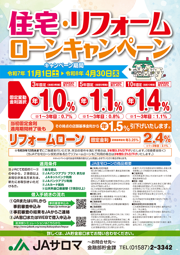 JA住宅ローンとリフォームローンキャンペーン令和7年11月1日(土)~令和8年4月30日(木)