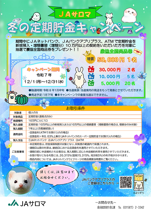 冬の定期貯金キャンペーン令和7年12月1日(月)~令和7年12月31日(水)